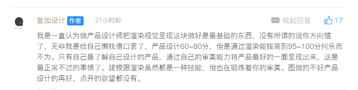 第三,所谓的捧和踩,捧我就不说了普象的评论里那些捧的这总那总,我看的烦不多赘述,至于踩你那个字里看到我踩了?我只是树立我的观点设计应该在渲染之上,设计是为用户,而不是为渲染。
