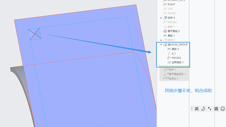 首先分析造型特点,这是一个弧形特征,单个小特征分布在弧形面上。这里可以把思路拆解两步做。