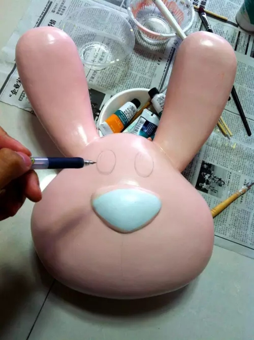 眼鼻口涂色需要手很定,要交由小学国画水平的兔咪制作。我画惯断线、出界的草图手势,还是很不适合这种上色方式。