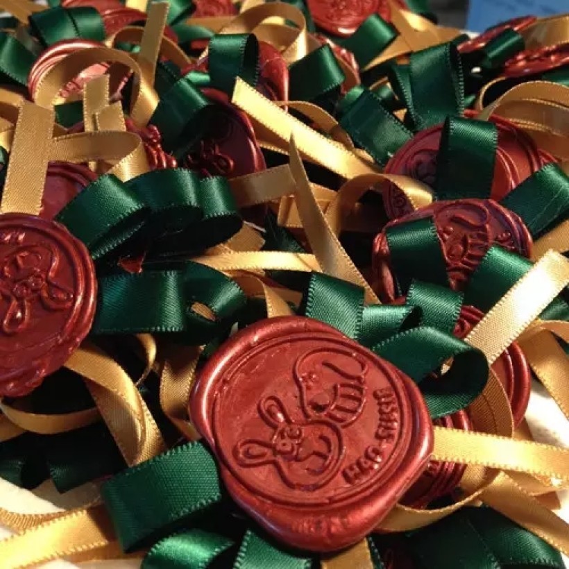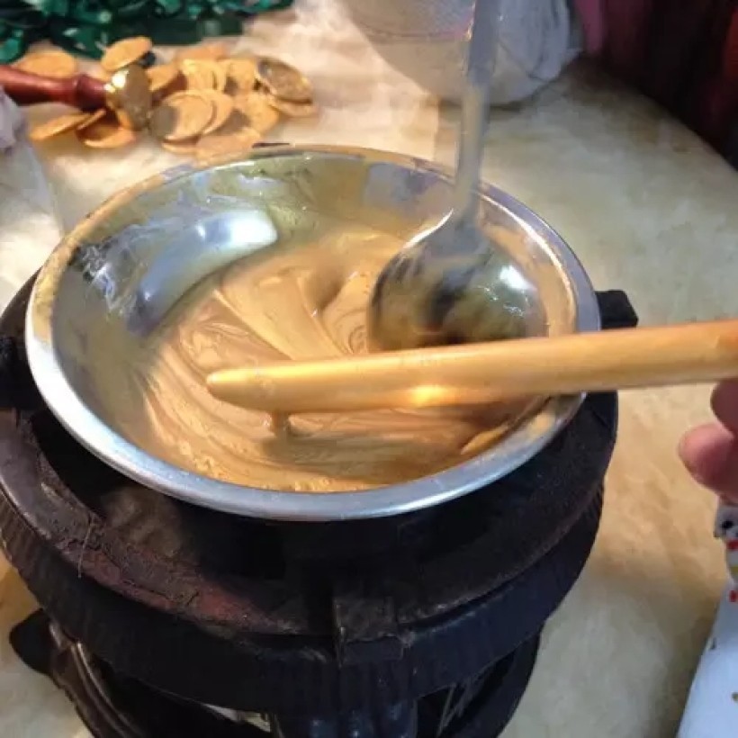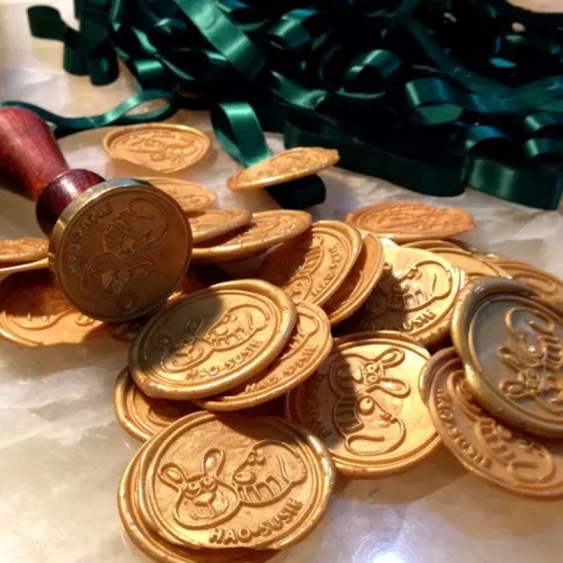 又在万能的淘宝上定做一个铜章。酒精灯是问茶楼借用的。要先把蜡煮成合适的融化度,用勺子勺出合适的量,铺成一团,把铜章压在上面印出图案。最好是两个人操作。因为火候要保持在一定的温度,太热蜡太融回流得太开,不够热压的时候又难压下去。勺出来的分量又要刚好,多的话旁边的边会很厚,少的话又印不完整。总之是个技术活。幸好因坏的章可以重新回炉再煮。