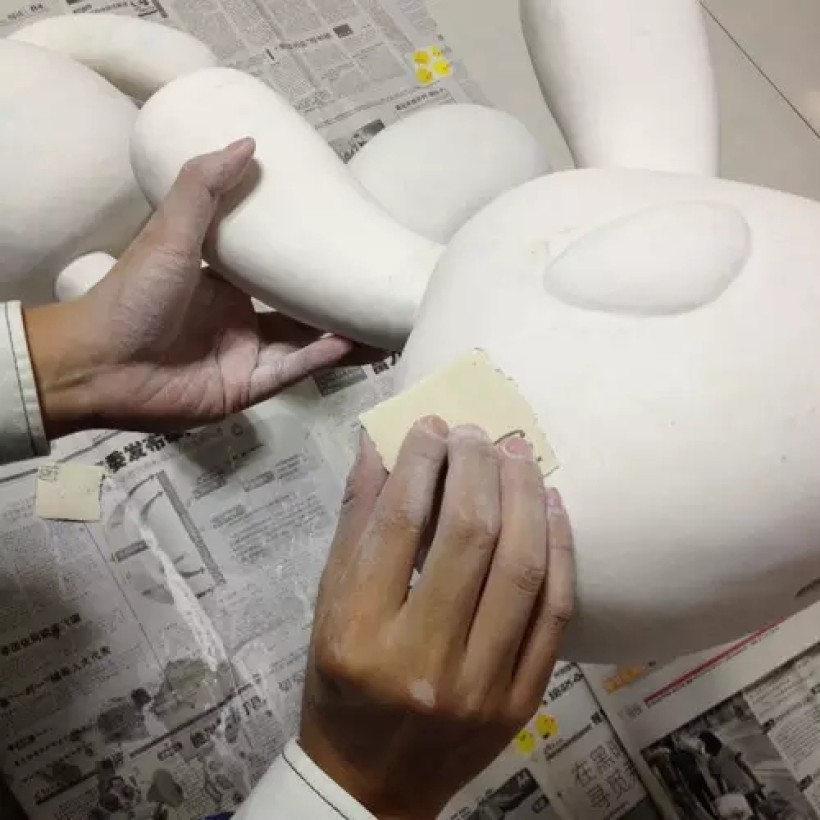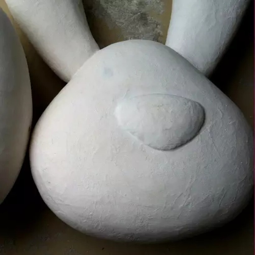 除了薄涂,还可以堆厚一点,填补凹位。兔头下巴有些位置用刀切的太多了,就厚补,效果还不错。不过要等第一层完全干透后再堆第二层,一次过堆太厚,干的过程会有裂痕。