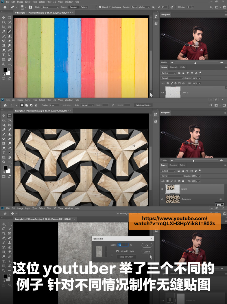 当然针对不同的情况可以用不同的手段处理无缝贴图达到最完美的效果,p6是一个youtuber针对三种情况通过不同的方法去制作无缝贴图,可以看看他的视频参考他的制作思路。 :)
