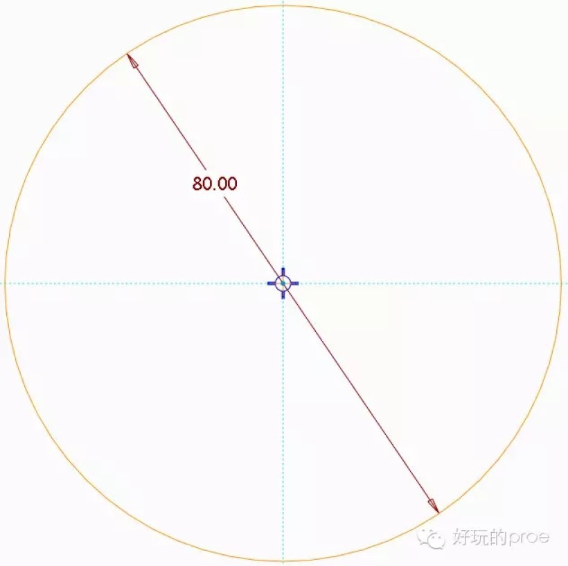 1、明白其原理后,我们草绘外轮廓,假定外轮廓的直径为80