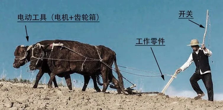 在想哥带你设计绿篱机文章中总结出了电动工具的通用结构形式,电机+齿轮箱,工作零件,开关。