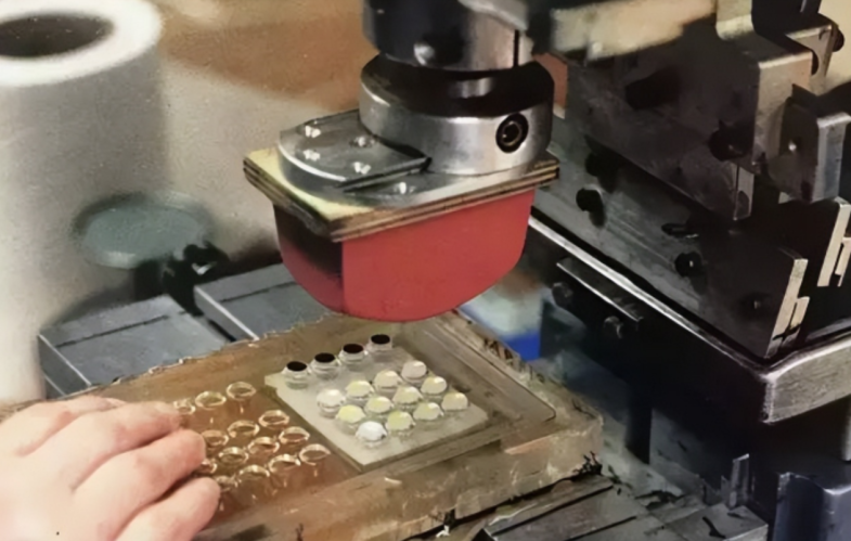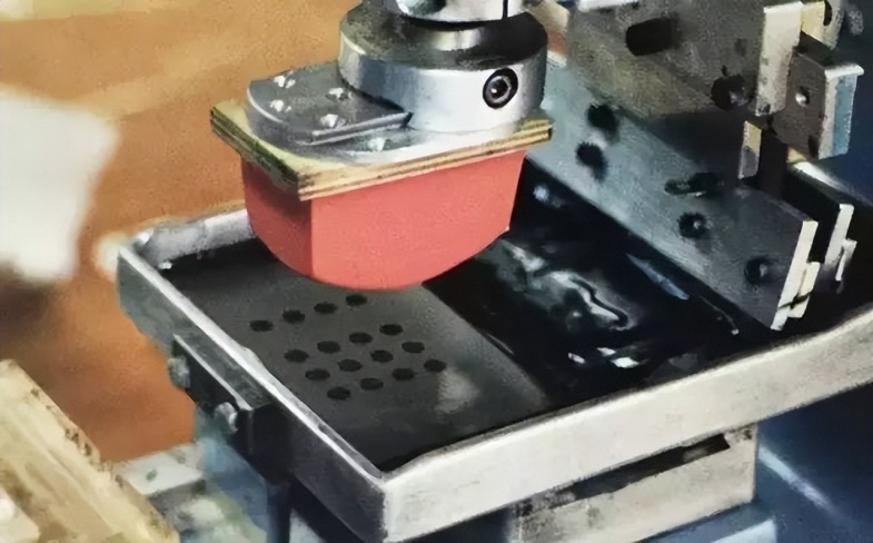 是把所需印刷的图案先运用照像制版的方法,制成钢(或者铜、热塑型塑料)凹版,利用硅橡胶材料制成的曲面移印头,将凹版上的油墨蘸到移印头的表面,然后往需要的对象表面压一下就能够印出文字、图案等
