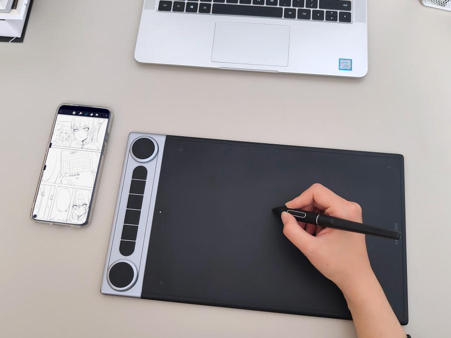 Q630M还支持连接安卓手机使用,体验了一下感觉很新奇,后面发现可以用来制作漫画分镜草稿,正式开画时就能一边参照手机,一边在电脑上创作了,之前我的分镜图也是在电脑上画,画完再导进手机里,过程略显曲折。