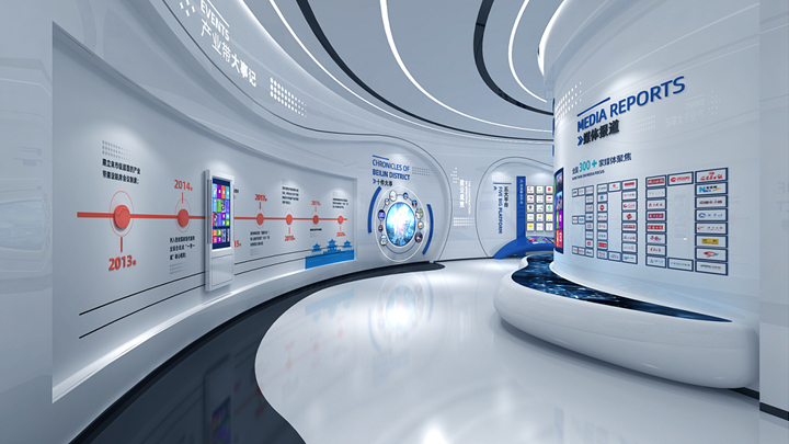 数字科技展厅真正要展示的是展品本身,而不是技术手段。这就要求在设计之前形成完整的、贴切的展览设计理念。展览设计理念的形成源于对展览内容的理解,是对数字多媒体技术展览内容、观众心理、展馆环境等因素合理的、综合的把握。展厅展馆的设计、实施必须以得到确认的展览设计理念为指导。