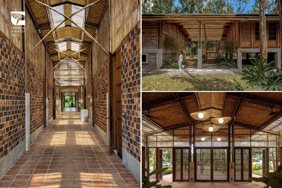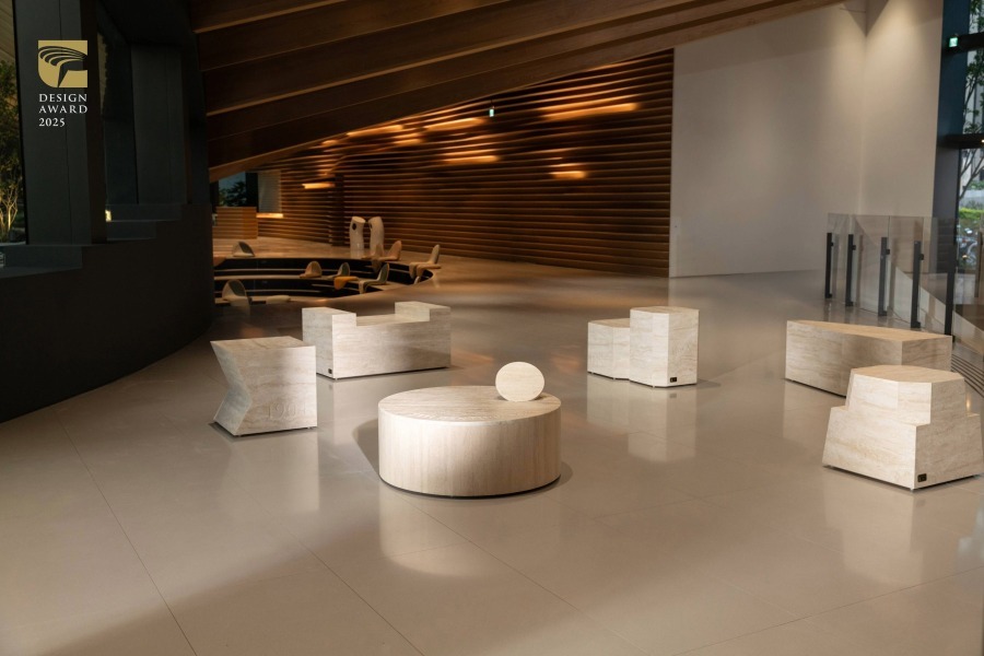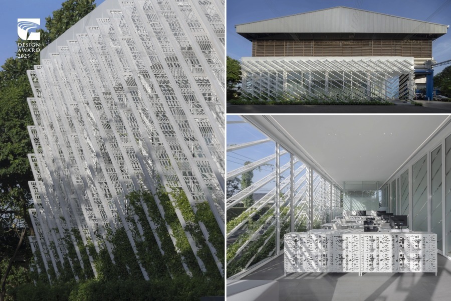 在空间设计类,张玛龙陈玉霖联合建筑师事务所以“2025 年大阪世博 TECH WORLD 馆”入围,其以群山意象为灵感,立面通过层叠折角塑造出山形建筑语汇,并以金属与花莲蛇纹石的结合呼应自然与科技的对话;馆内则以登山经验设计动线,串连多重展演空间,营造兼具象征性与沉浸感的场域体验。菲律宾建筑事务所 Dominic Galicia Architects 的“Kilyawan Farm Resort”(鸣鸟农场度假村),以再利用、自然采光与永续为核心概念,将鸡舍改造为接待空间与客房,整体设计除保留原始建筑格局及其与周遭地貌关系,更大量运用基地回收建材或当地天然材料建造,在延续父亲农场记忆的同时,营造一处宁静且重视生态的度假场域。泰国 AUN Design Studio 为钢铁厂设计的办公空间“‘No Time to Waste’ Office”,运用工厂生产过程中耗损的金属废料,转化为建筑构件与客制家具,如废弃金属板经穿孔处理后成为装饰立面,亦可作为攀爬植物的棚架,令空间可随光影与绿意景观产生不同变化,不仅是循环设计的实践,也展现工业废料在建筑应用的创新美学。