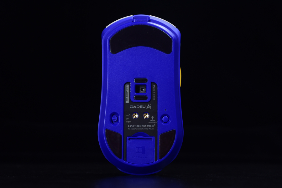 达尔优A950在内置930毫安锂电池和KBS按键结构后的重量大约是88克,依然是延用了自家的无打孔轻量化设计,Type-C连接线材也是轻量化游戏鼠标标配的伞绳连接线。