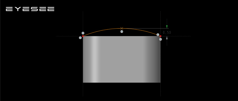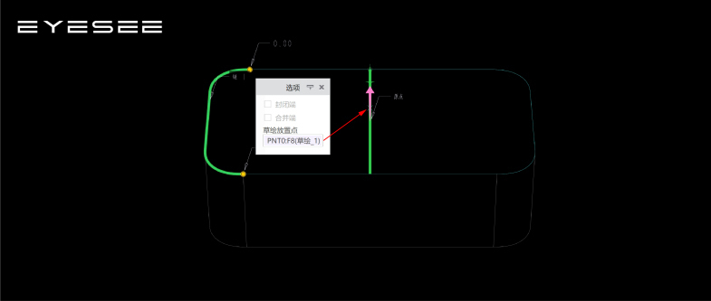 3.草绘突起的圆弧,在中点添加草绘点;