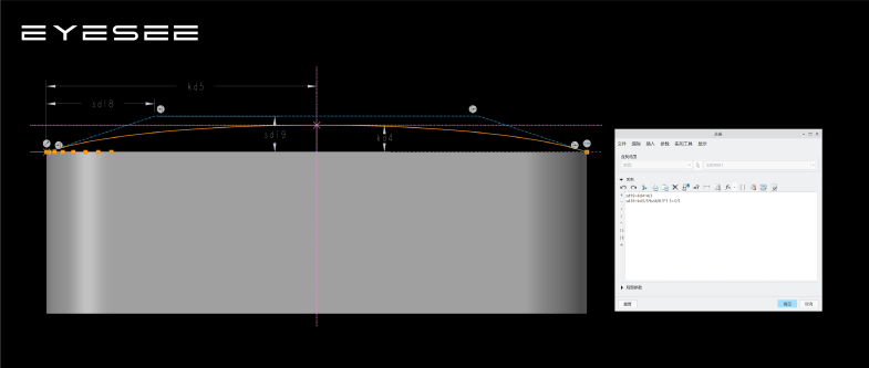 解释一下sd19=kd4*4/3 如果多边形控制样条线的多边形是个梯形,那么样条线的高度就是梯形高度的 3/4;我们现在已经知道样条线的高度kd4,那么梯形高度就是kd4*4/3 sd18的标注是为了让四个拐角处的曲面隆起;