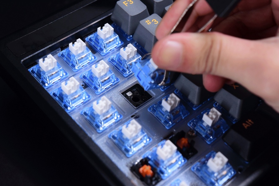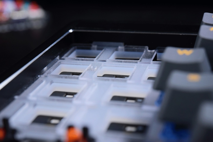 轴体方面依然是用了自家口碑较好的天空轴V3,轴座热插拔和贴片灯设计。个人认为,gasket结构用线性轴是很搭的,但这款84pro可选轴体只有天空V3真的选择性太少了,其实他们也有弹性手感著称的糖果轴,应该也把它纳入轴体选择之一才是。