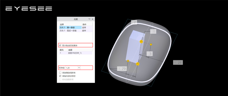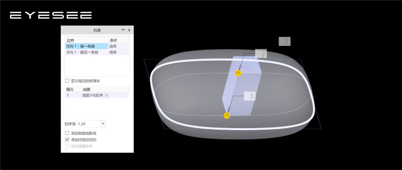 我们还可以设置曲率的拉伸值,来调节曲面的形状这还是边界混合特有的;