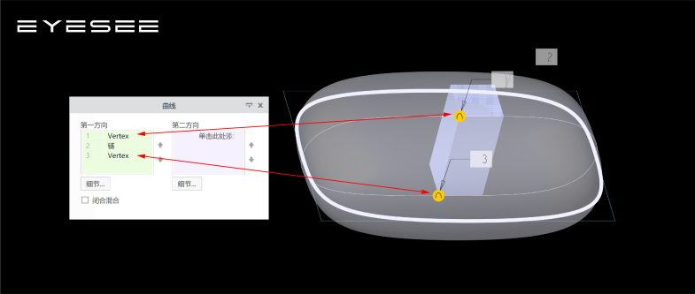 将两个顶点的边界设置成曲率这也是边界混和特有的;