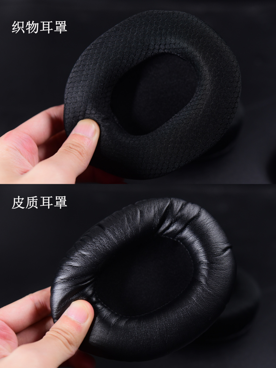 耳机上的耳罩和配送的材质也是不一样的,但同样的是柔软且有韧性。织物材质的耳罩透气性能更足,皮质的隔音效果更佳,各有各的优点,可以选择自己喜欢的进行装配,而且耳罩好大一个,耳朵不太大的朋友甚至可以真正的包裹整个耳朵。