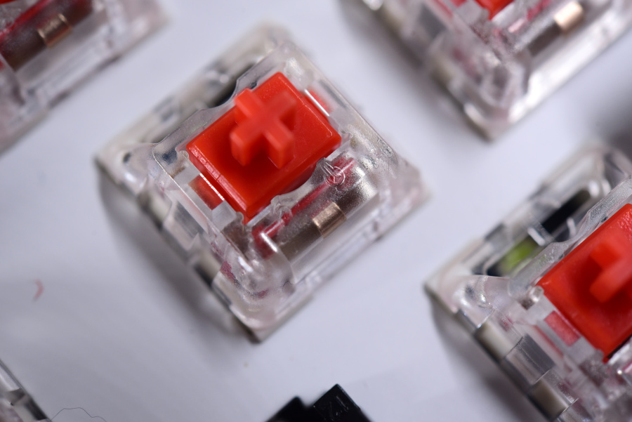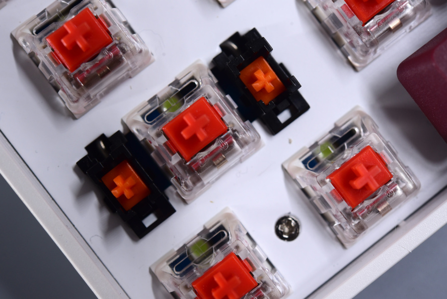至于轴体方面,有黑青茶红可以选,因为主要是用来码字办公,就选了不太会吵到别人的红轴,轴体上面有达尔优和凯华的logo,大概是达尔优的自主轴由凯华代工。