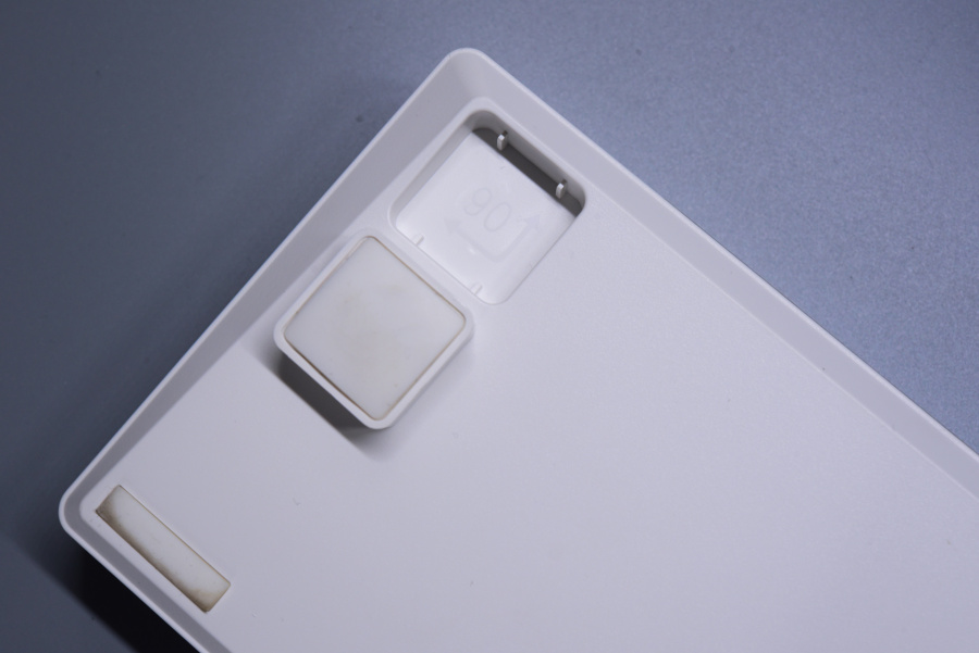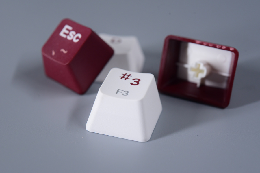 键帽方面直接上了PBT键帽,一些灰色的字符是镭雕工艺,外观稳定性很高,相对于部分高端的ABS键帽,PBT可以说是外观和手感稳定性的最优解了。