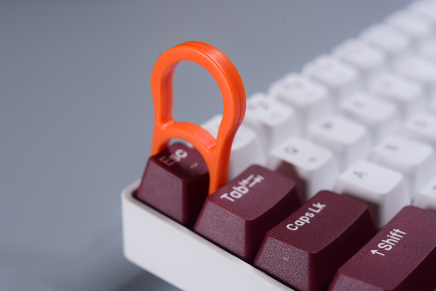 附送的这个拔键器太紧了,而且键位之间缝隙太小,很容易刮花键帽,所以还是建议用钢丝拔键器好。