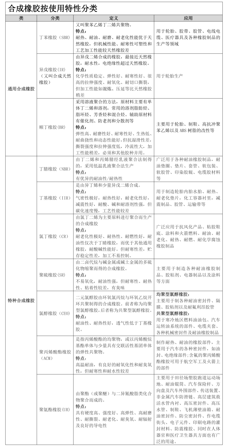 • 合成橡胶按使用特性分类,如图: