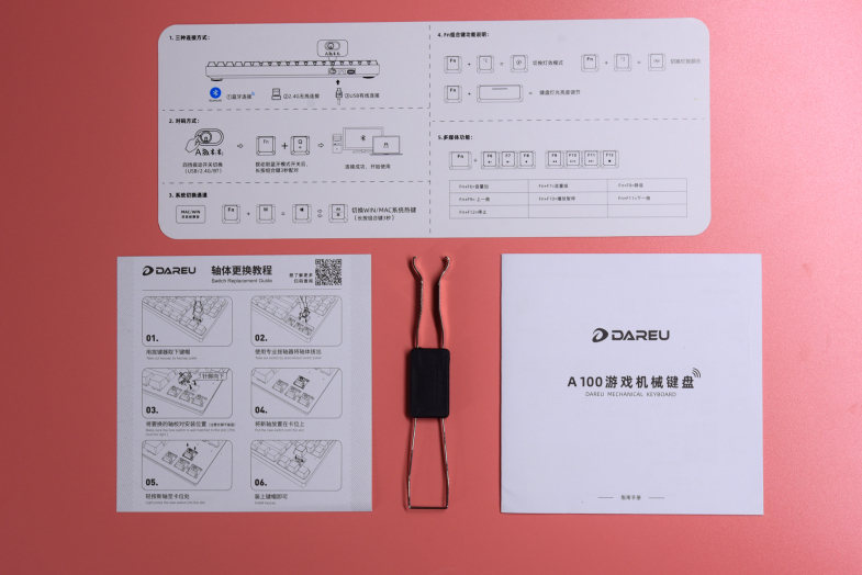 而配件方面,比较有意思的是,除了常规的没啥人会看的说明书以外还配了一张热插拔操作说明和键盘连接及组合按键操作的说明。