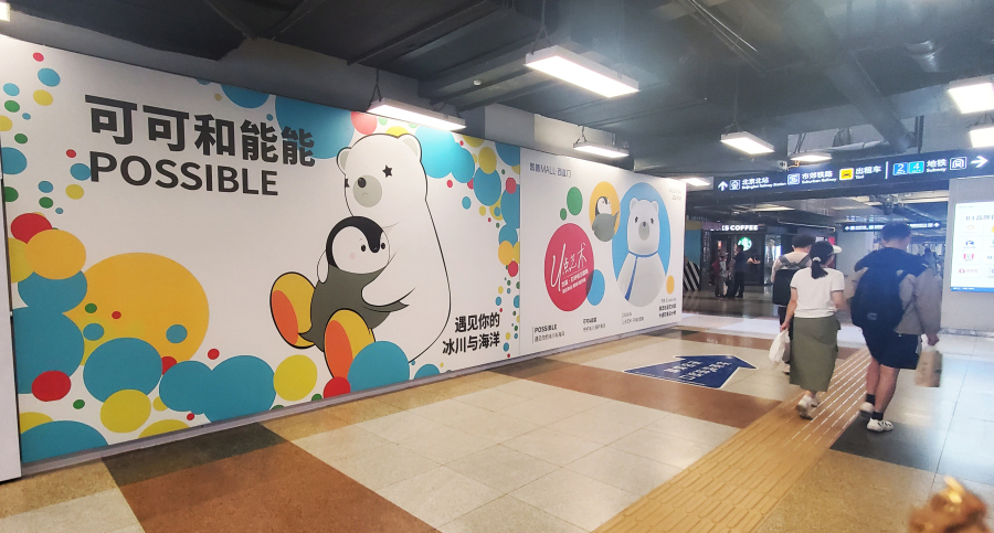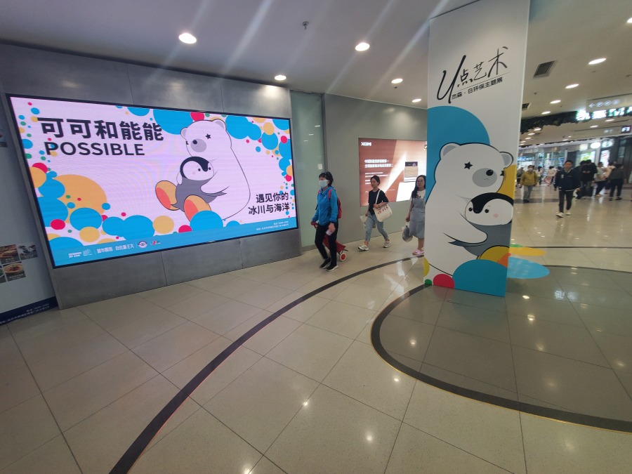 展览的核心作品,是名为“possible可可和能能”的系列。可可是一只生活在遥远南极的企鹅,活泼好奇,对周围的世界充满了探索的渴望。然而,随着气候变暖,冰川逐渐融化,可可的家园面临着前所未有的威胁。与此同时,能能,这只来自北极的北极熊,也面临着类似的困境。由于冰川的减少,能能的栖息地日益缩小,生存空间变得越来越有限。