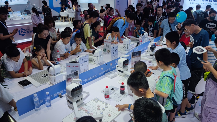 现场的互动体验区非常有趣!与一个教育机器人进行交互,它通过游戏帮助孩子学习编程。看到小朋友们的笑脸,真的觉得科技带来了很多乐趣和可能性。👧👦💻