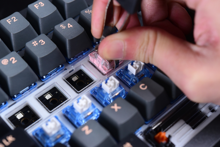 换上了糖果轴之后,从外观上看,就感觉舒服了不少,可惜上盖不是粉色,不然更搭。手感方面的话,因为达尔优A98的 gasket结构软韧,搭配糖果轴的弹性手感,整体来说是让结构和轴体相互辉映,产生了更弹的感觉。