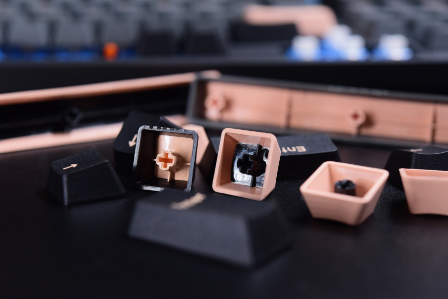 增补键帽在水口处理方面更为细致,不同生产批次的键帽也会有不同的细节差异,水口这种,看不见就完事了。