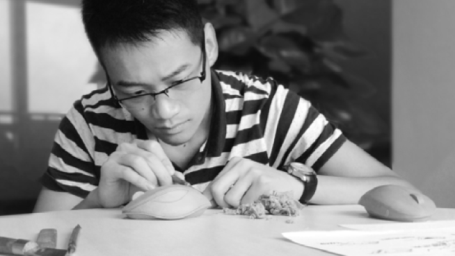 设计的难点在此类产品竞争中最终售价在39元,出厂价在30 元。减去电子成本和代理商及销售中间费用留给外观和结构件在5元的成本下,做到外在最实惠,将外观设计附加值最大化。对设计技法、流行趋势、结构模具、注塑装配、产能的考验很大。在这个限制空间内设计的方向和出发点如下:❶新品类和新生物,语音控制和云存储功能是全球首个概念,新功能开启新品类,产品识别需要初看此物体就传递出功能同时外观形象与传统鼠标截然不同。外观设计传递信息“大不同小不异”,大不同是指形态语义传达理念、风格、轮廓、风格、分割等。小不异指细节理念来源、子部件的特殊处理、模具分形都有源起并经起考究。❷形象和语言重新塑造,新形象会导致体块和线条改变,但会失去手感(人体工学),怎样均衡二者,需要大量的探索和实验。❸基于全塑胶设计,产品运营和销售模式约束成本,只能用塑胶材料且免喷涂,纯塑胶设计造成低廉感觉。怎样通过表面处理的细节的纹路及丝印图标的设计来拟补材料的低廉,与此同时通过造型设计、拆件色块、线条提升形体的美。以上是设计目的在下文的介绍中会一一描述。