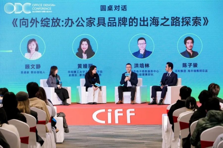 在上午的圆桌对话环节中,主持人灵感家联合创始人顾文静,与华南理工大学工商管理学院副院长 黄嫚丽、深圳市电子商务服务中心主任助理兼部长 洪培林、百利集团海外销售部总监 陈子骏围绕《向外绽放:办公家具品牌的出海之路探索》这一话题,从战略框架、数字基建、品牌实战的不同纬度,解构办公品牌的全球进化论。
