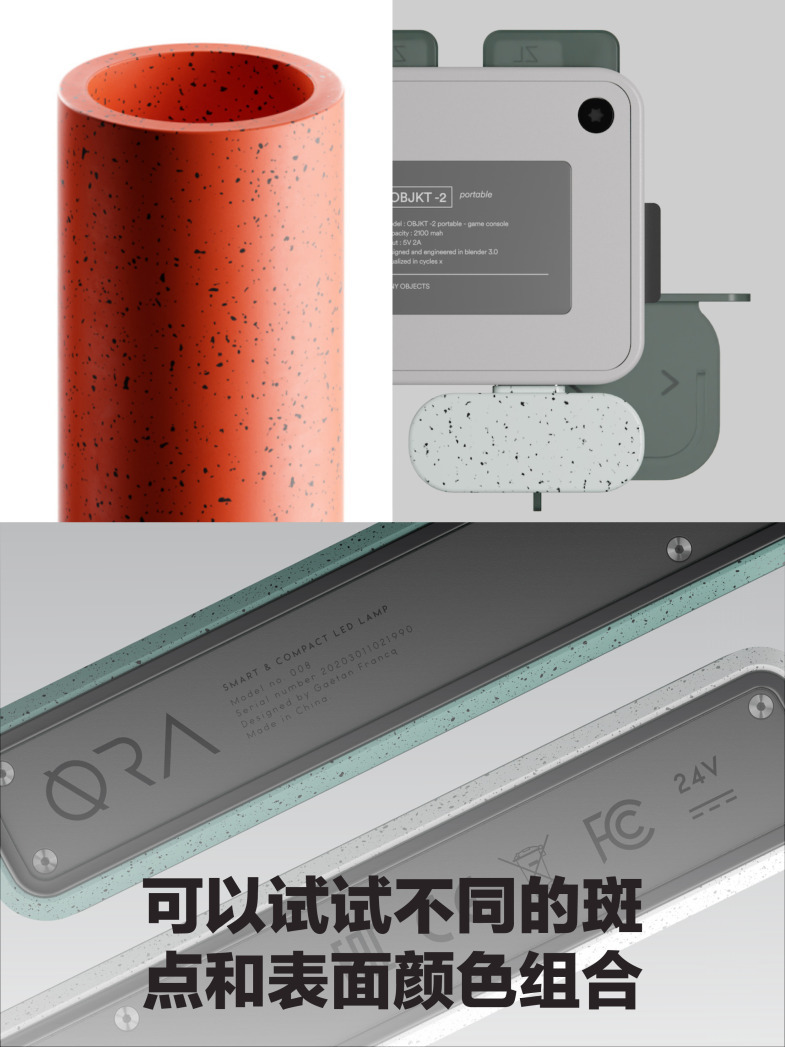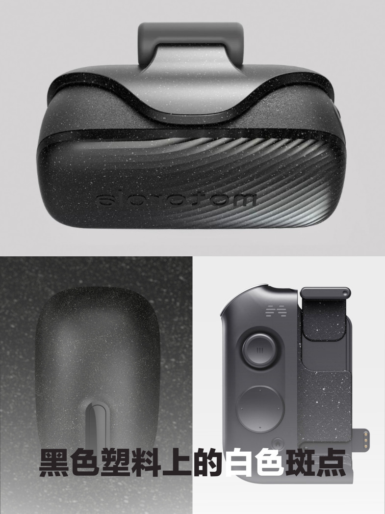 斑点纹理在近两年设计流行趋势高频出现,它可以丰富产品表面的细节,突出塑料材质的质感。由伦敦layer design为Nolii操刀设计的充电设备(p7)也运用了这种面处理效果,在英国大受好评,体现了不俗的商业价值。