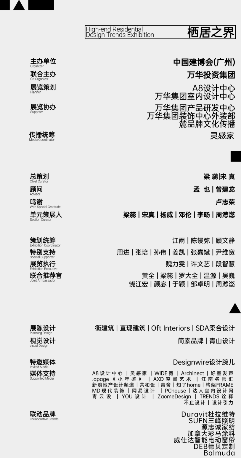 本届特展,由广州建博会发起,由展入“宅”、特别邀请万华投资集团联合举办,由麓湖A8设计中心、万华集团室内设计中心参与策展,由灵感家担任传播统筹。