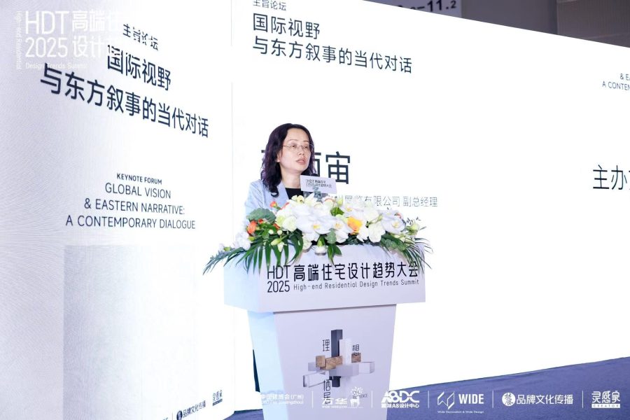 中国对外贸易广州展览有限公司副总经理邓丽宙女士代表主办方,进行开场致辞,以对“高端住宅”未来价值的前瞻判断,引出论坛的战略定位与文化意涵。