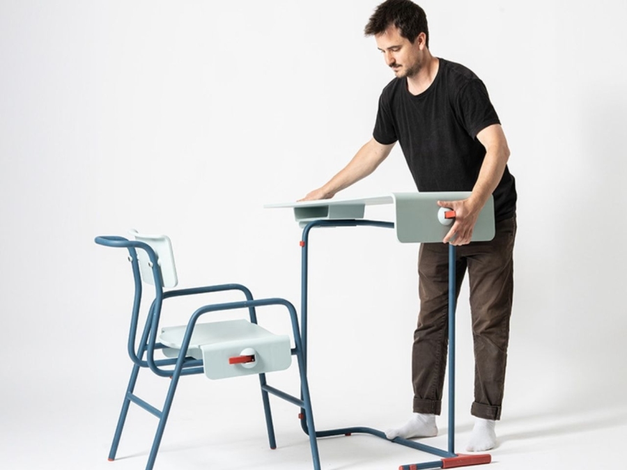 NINEIDEA:Eduba是由设计师Roie Avni开发的自适应模块化家具系统,它通过引入一种新型的教室来挑战传统教育的静态环境:一种可以改变、发展和响应用户的教室。通过模块化、轻质结构和直观机制的巧妙融合,Eduba将坐着学习的行为转化为学生自己塑造的动态体验。Eduba的核心是一把椅子和桌子的组合,旨在实现多功能性。每个部件都可以在几秒钟内连接、拆卸、翻转或重新配置。桌子根据其放置在几何基座上的方式提供了三个高度级别,而椅子通过一个简单的手柄机制在高、中、低座位之间移动,该手柄机制可以锁定和解锁框架。无需任何工具,家具可以随时拆卸和重建,支持不同学习模式之间的无缝过渡。
