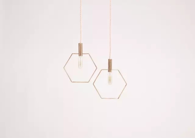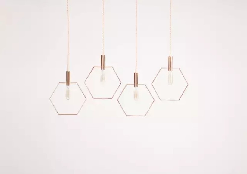 <蜂巢灯>灵感来源于蜂巢,每一个灯像一个蜂巢的单元格,通过六边形的镶嵌原理可以实现多个吊灯的组合形式来达到蜂巢的建筑感,使用者任意搭配可以达到高度的自由度。