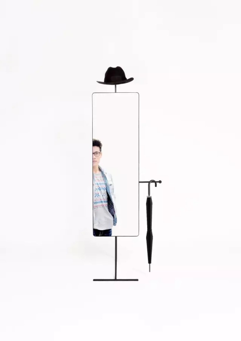 <绅士镜>是为单身男士而设计,从正面看它就像一个绅士的抽象形象,它会时时提醒人在出门之前在注重自己的仪表。希望通过这种提示来形成人与产品的互动,让产品提供给人是一种温暖的幽默。