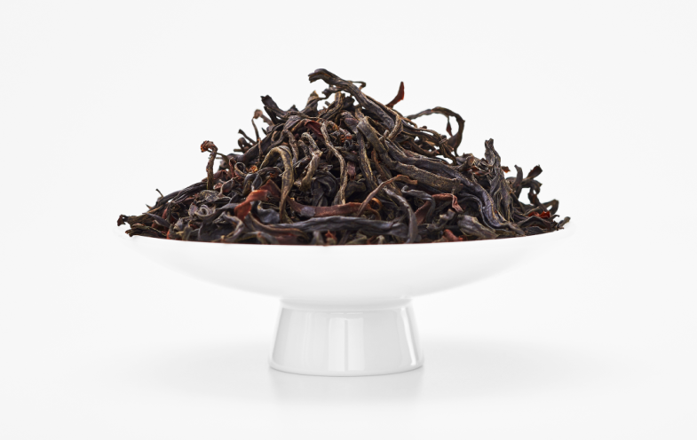 干茶乌黑油润,夹杂着暗红,
