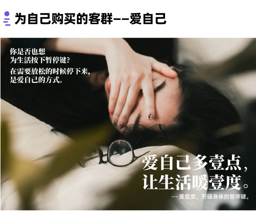 顺应加班潮,精准狙击当代青年碎片化时间,消解健康焦虑。上班间隙跟随斐壹度的“呼吸”节奏,释放身心压力。外养身,内养心,开启自如新生活。