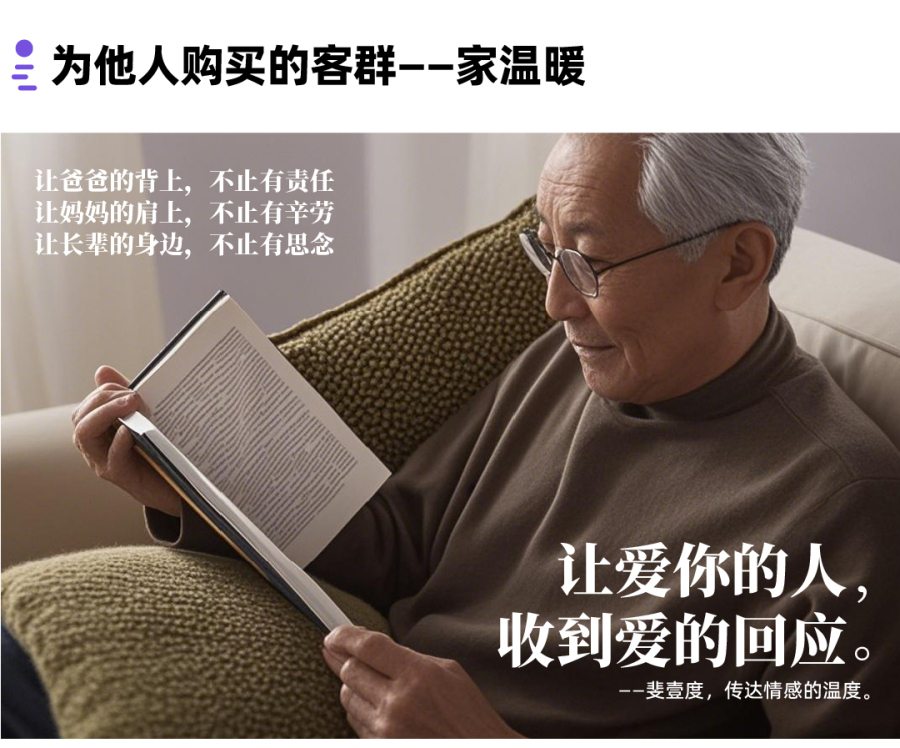 在追求 “精养” 的时代,我们选择用科技美学与传统理疗进行碰撞,拉近人与产品之间的距离,增强产品的情感化、人性化,赋予产品多一度的温暖。用科学、专业的方法改变传统的疗养方式,营造一种智能化、高效便捷、轻松可达的疗养体验,吸引新兴养生人群感受轻疗愈、轻社交、懒式养生的生活方式;同时将居家疗愈的新奇体验和温暖分享给家人。