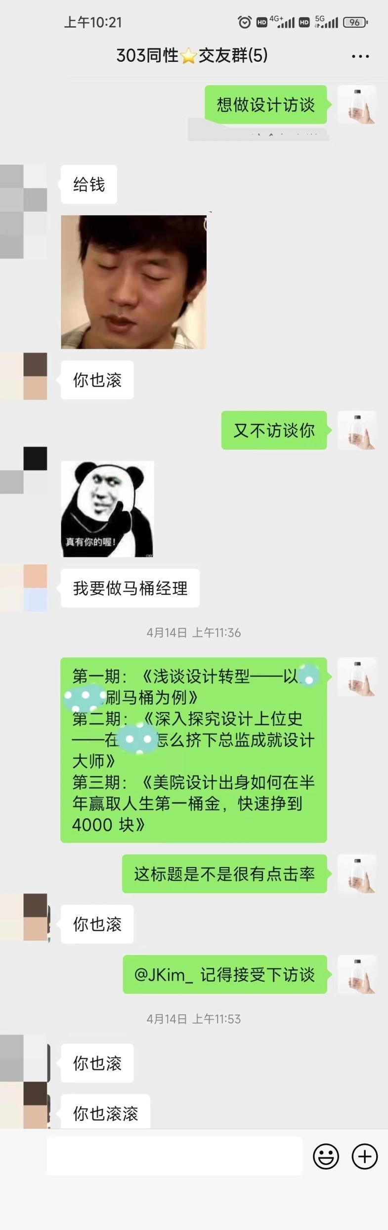 访谈人员来源:其实朋友圈里在大学毕业前我不要脸加了挺多业内的人士,另外毕业后的很多同学师兄师姐才干1-4年应该还没入土,最后就是有愿意分享的朋友也可以加我(仅限设计出身)。