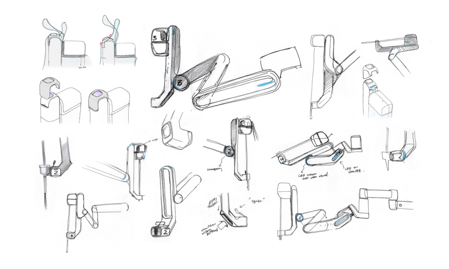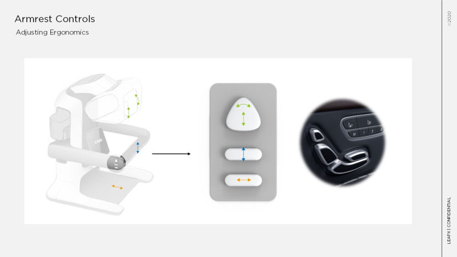 控制台各模块位置都可供调节,以便适应不同体型的手术医生。我们从汽车座椅的调整按钮获取灵感,设计了形象直观的调节面板,让医生一眼就能轻松的理解和调节这些模块。