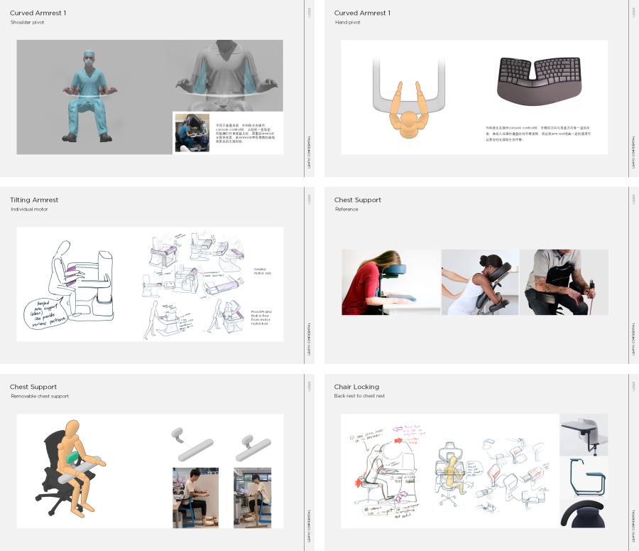 为了让手术医生在控制台前长时间操作手术更加舒适和健康,我们对不同坐姿进行了大量的研究。我们参考了不同专业的座椅和坐姿,并制作实物模型进行前期测试。