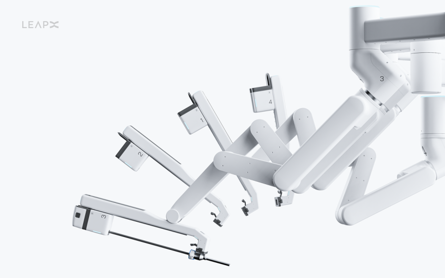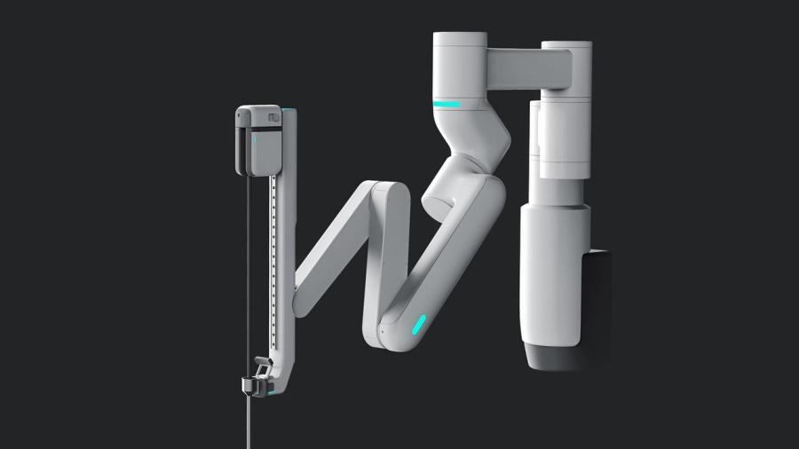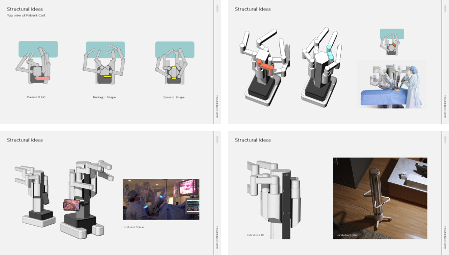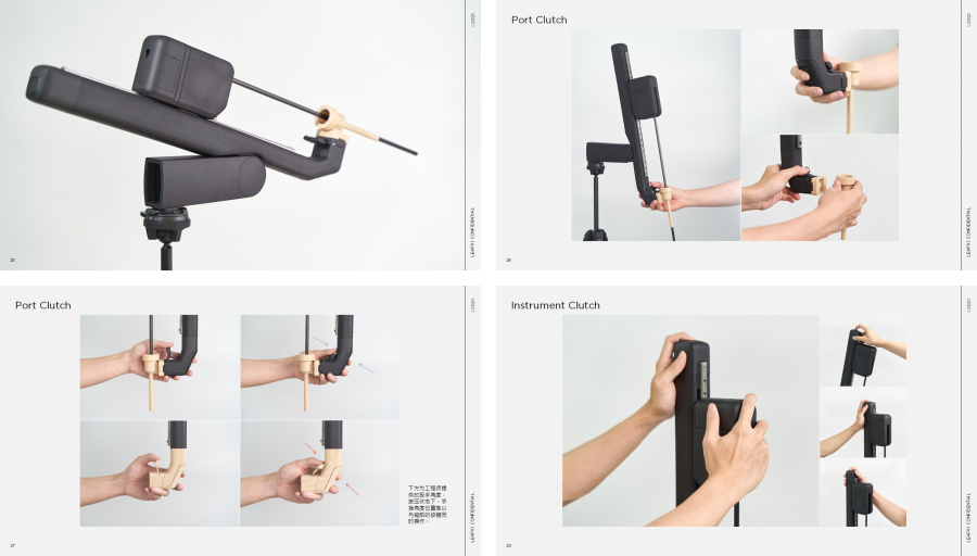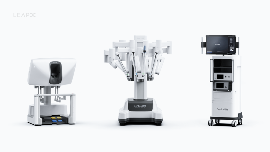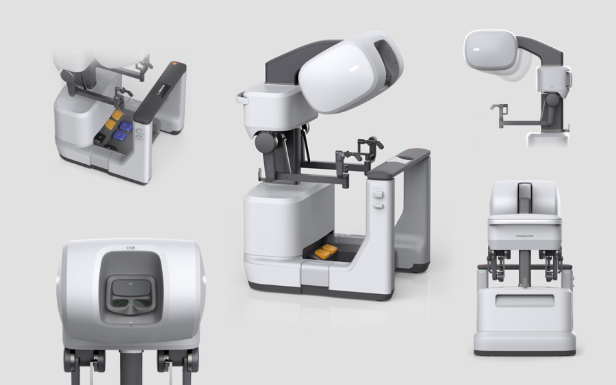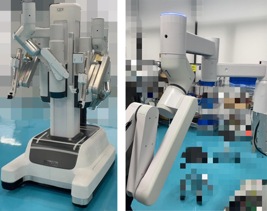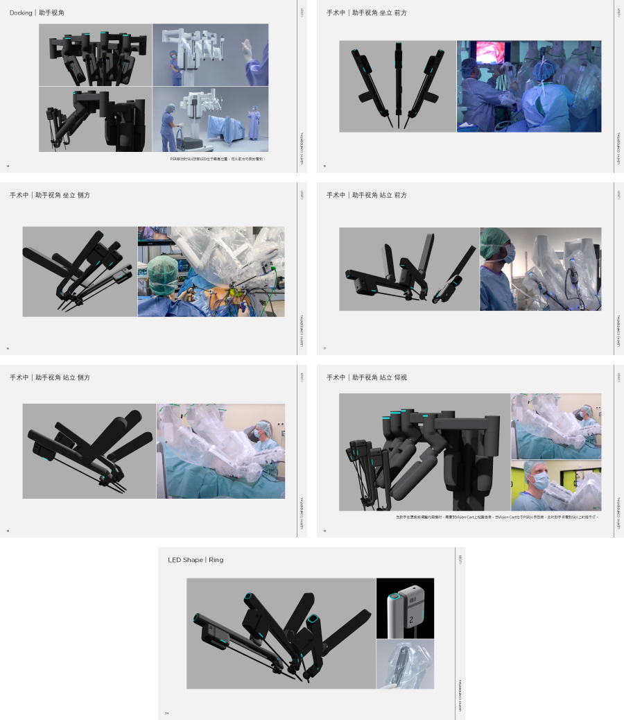 患者手术平台配备了四支机械臂,末端装配各种手术器械,相当于手术医生双手的延伸,是手术系统中直接接触和进入病人体内的部分。因此设计考量中有两点非常重要:增加操作安全性与减少对病人的心理压力和恐惧感。