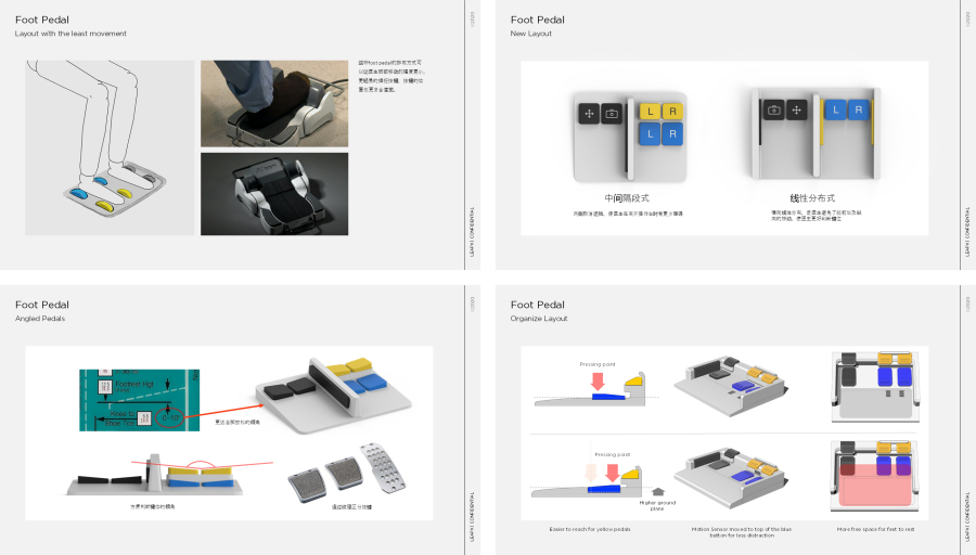 我们需要合理设计踏板的布局,降低医生的盲操难度,减少误触和误操作的几率。为此我们也仔细研究了人体脚部的尺寸和合适的活动范围。
