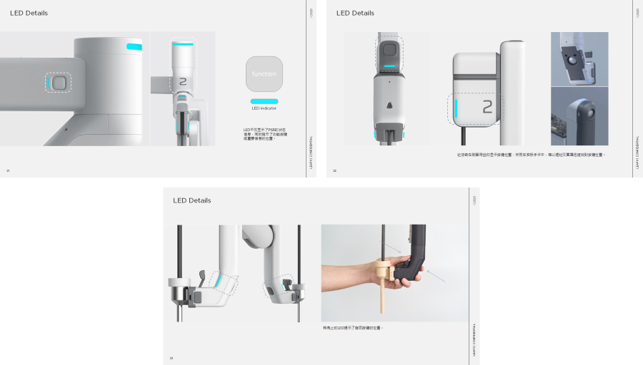 在前期的调研中我们发现,LED显示机器运行状态,至关重要;当医生助手操作某个部件时,会重点关注该部位周围的LED。