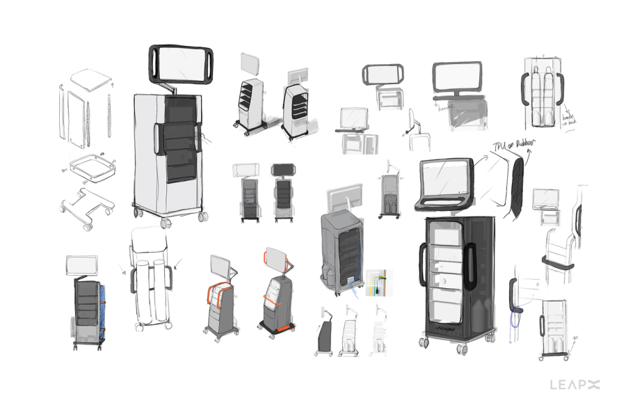 影像处理平台相对简单,设计上我们需要考虑屏幕的可调节性,兼容第三方医学仪器,线缆收纳,可维护性等。