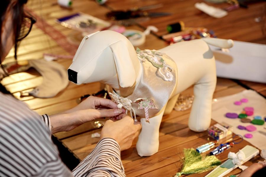 分享结束后, Zorika女士继续教授宠物服装设计的相关要点,并带领现场观众使用可持续面料制作「国风主题宠物服饰」。经过学习与实践,大家都完成了独一无二的宠物服装成衣,更在制作过程中深化了对可持续生活方式的认识和理解。