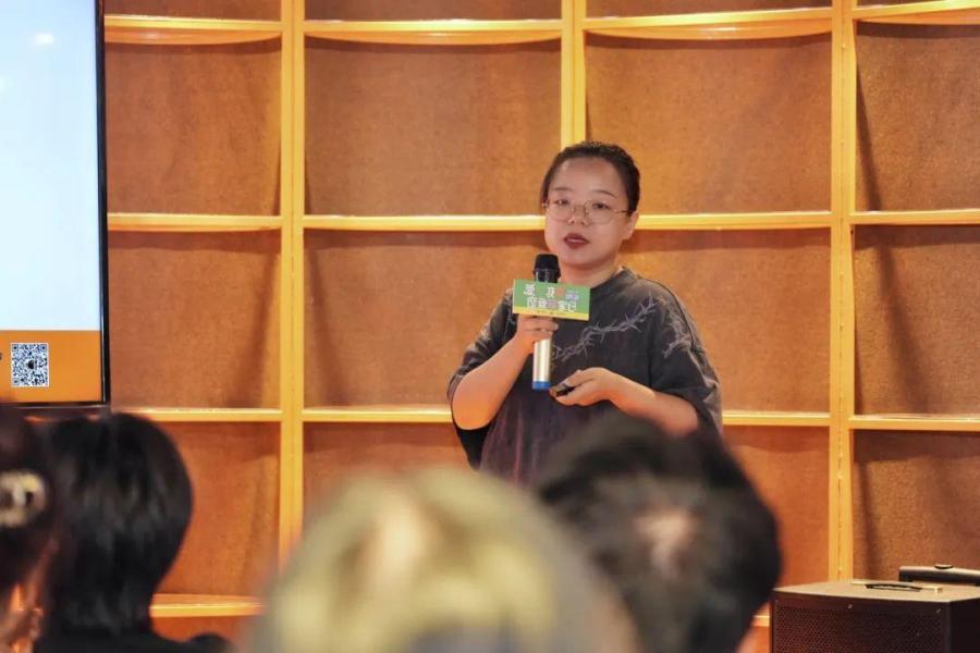 在可持续时尚工作坊中,ZOZORIKA可持续宠物服饰品牌创始人 Zorika女士分享可持续面料与宠物服装设计相关的知识与案例讲解。