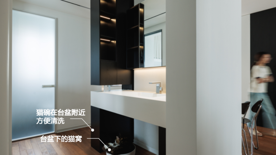 谈及“去味”,燕泠霖女士分享了如何通过空间布局的策略,如猫砂盆的隐蔽布局与高效排气系统的融合,有效解决了宠物气味这一常见难题,从而在保持家居环境清新宜人的同时,也保留了空间的审美价值与居住舒适度。