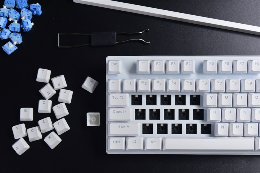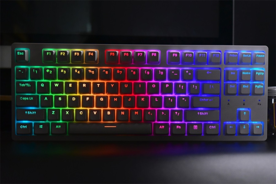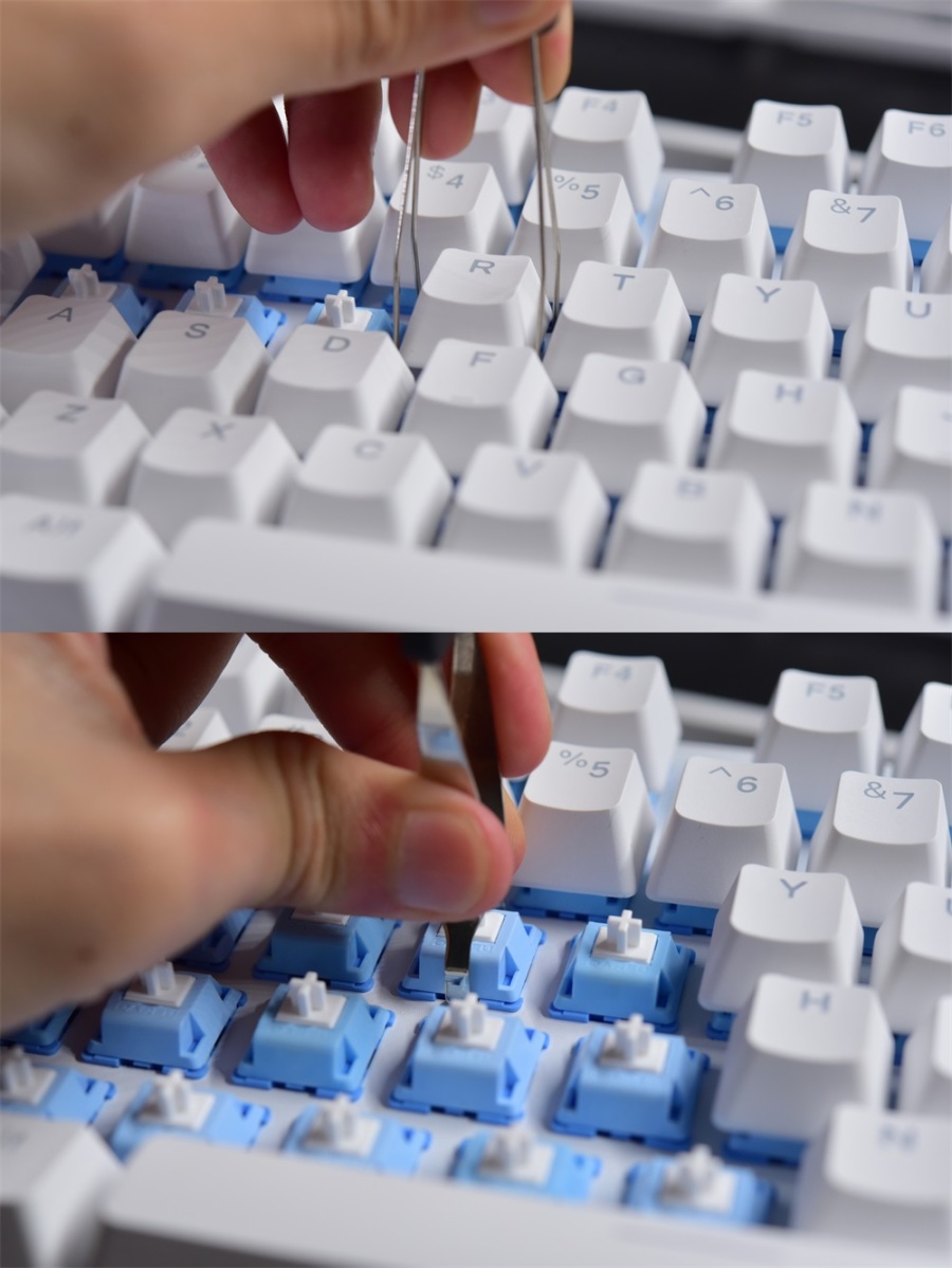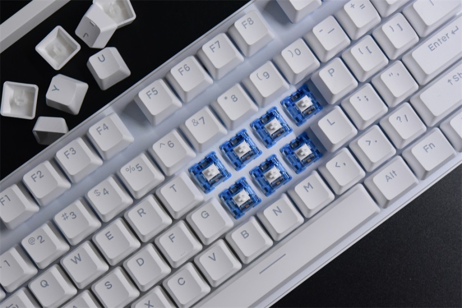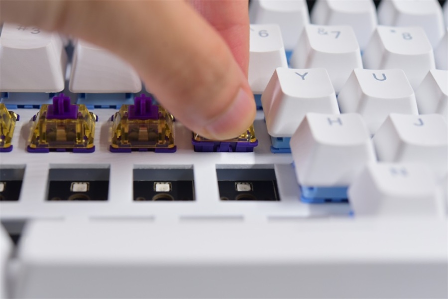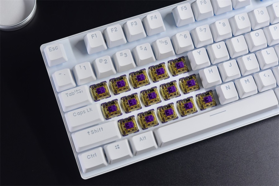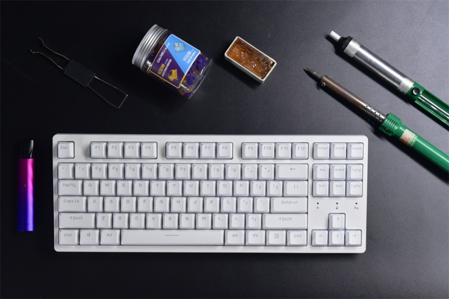 其实也不用烙铁、焊棒、松脂那些。直接在达尔优的A87全插拔三模版本上用,插拔就完事了,而且还是RGB灯光的,可以更好去感受这个轴对灯光的变化。